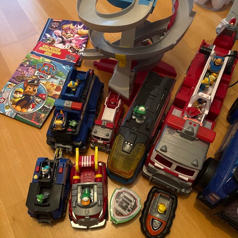 Paw patrol tårn. Den ene festen har knekt litt, men de andre holder "sklien" på plass. Selges uten figurer.