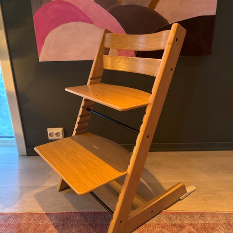 Stokke Tripp Trapp høy barnestol i eik. Nyere modell.