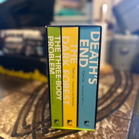 Cixin Liu Remembrance of Earth’s Past boksett trilogi på engelsk. Settet inneholder tre science fiction-romaner: «The Three-Body Problem», «The Dark Forest» og «Death’s End». Bøkene følger samme historieforløp og utgjør en komplett trilogi. Paperback-utgaver med original engelsk tekst, egnet for lesere som ønsker hele serien samlet i ett sett.