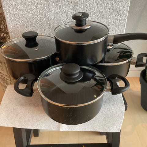 Ulike merker, alle mangler lokk. Keramikk, ikke induks