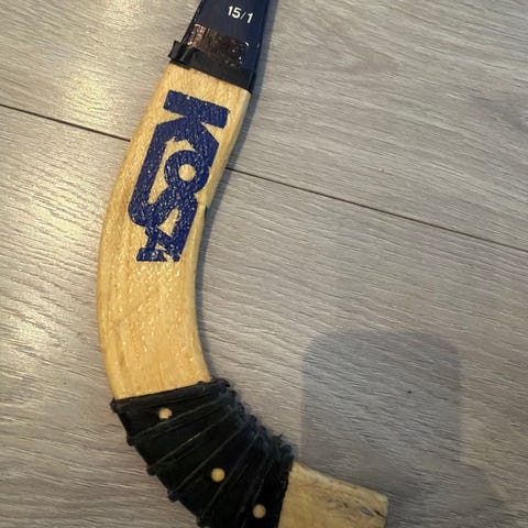 Kosa XP-7000 bandykølle i tre med rett kølleblad. Når den står vinkelrett fra bakken er den målt ish 105cm fra bakke til topp. Denne er pent brukt.