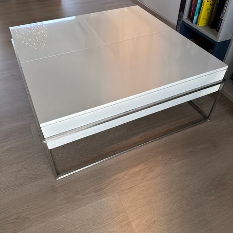 Selger et svart sofa/salongbord.