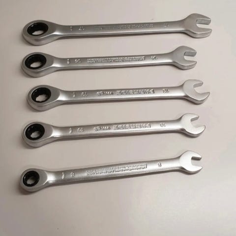 Skralle Kombinasjonsnøkkel i forskjellige størrelser. Nytt sett