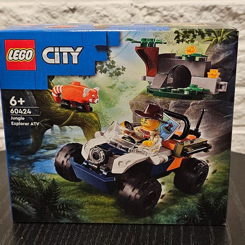 LEGO City byggesett. Esken viser et sett med terrengbil, tre, droner og dyrefigurer i et naturmiljø. Anbefalt alder fra 5 år. Passer til bygging, lek og utvidelse av andre LEGO City-sett.