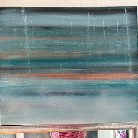 Signert oljemaleri; “Deulofeu” – stemningsfullt landskapsmotiv i varme fargar. Maleriet er kjøpt på Auctionsnet i 2024.