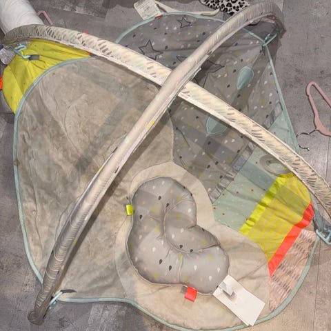 Pent brukt babygym kjøpt ny i juli 2025 på Sprell, vi har vært VELDIG fornøyde med det! Følger med pute og hengende leker (alt som er avbildet). Noen av lekene har lyd.