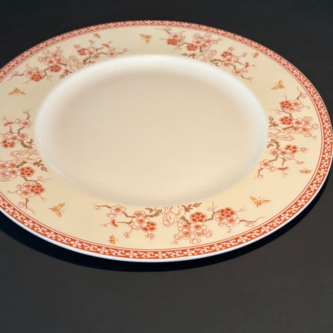 Bridgewater Toast & Marmalade tallerken i keramikk. Tallerkenen er lys med mørk tekstdekor langs kanten. Produsert i England. Egner seg til servering av frokost, lunsj eller andre måltider ved borddekking. 4 stk, selges sammen