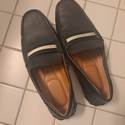 Herresko loafers i blå farge, størrelse 43. Skoene har overdel med strukturert overflate og lys kontraststripe over vristen. Innvendig er det en formstøpt såle for bedre komfort. Yttersålen er i gummi med mønster for bedre grep. Egner seg som hverdagssko eller til mer pene, uformelle anledninger. Str 9. Ubrukt nypris 3400 kr