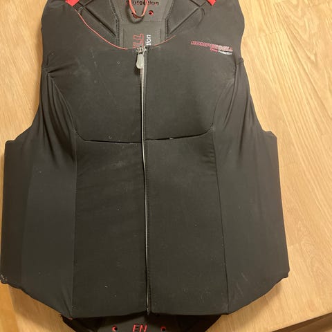 Komperdell Cross Protection ryggskinne i vestutførelse. Modellen har hel glidelås i front og integrert ryggbeskyttelse med perforert plate for ventilasjon. Ytterstoffet er i elastisk materiale som sitter tett rundt overkroppen. Fargekombinasjon svart og rød. Egnet som kroppsnær ryggbeskyttelse til aktiviteter der ekstra beskyttelse av rygg er ønskelig, for eksempel ski eller annen tilsvarende bruk.
