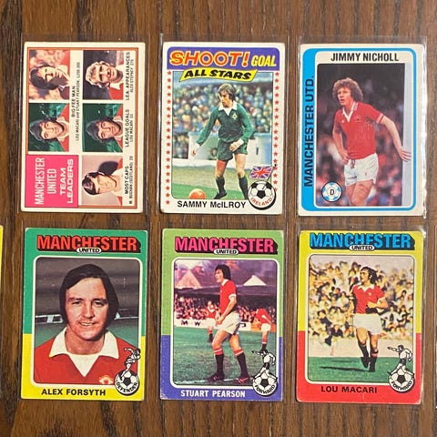 13 stk Topps fotball kort, diverse spillere, fra 1970 tallet.