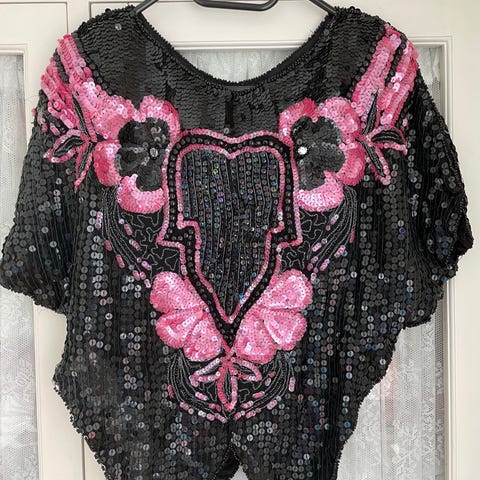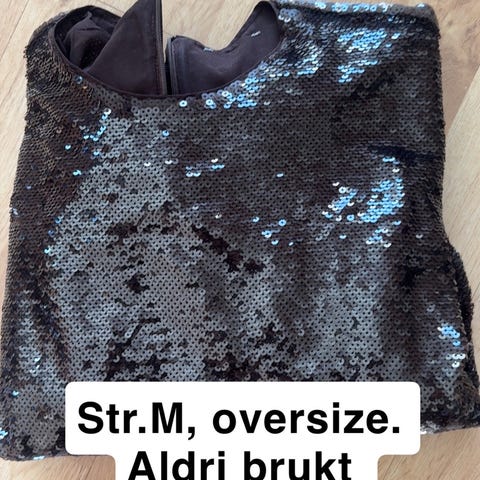 Paljett topp, kul til jeans og nydelig til en fest, under en jeans jakke, skinnjakke eller blazer. Smal modell.