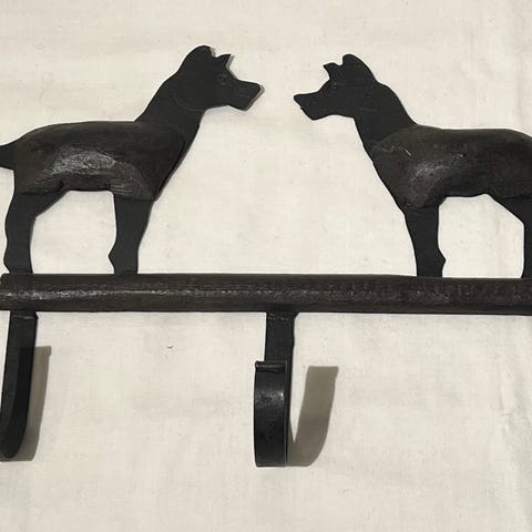 Katt-veggknagg i metall, med en knagg, selges. Bredde 17,5 cm og høyde er 26 cm. Må hentes, sender ikke.