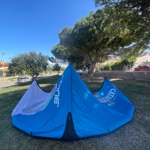 Ozone Access 4 snø kite i rød og hvit farge. Ozone-logo og modellbetegnelse Access 4. Leveres med liner og kontrollbar som vist på bildene. Passer for nybegynnere og lette personer under normale forhold eller erfarne i sterk og ustabil vind. Tar imot bud.