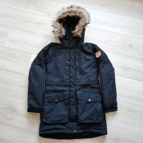 Fjällräven jakke for dame i størrelse S. Jakken er svart og laget i G-1000. Den har hette, gjennomgående glidelås foran med trykknapper, samt justeringsmuligheter i livet. Lengden går ned over hoftene for ekstra dekning. Egnet som ytterjakke i hverdagen og til bruk utendørs i kjøligere værforhold.