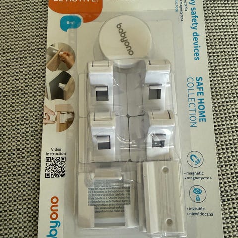 I tillegg følger det med BabyDan Home Safety Starter og BabyDan Magnet Lock barnesikringsprodukter i hvit farge. Disse kan brukes til sikring av skap og skuffer ved hjelp av mekaniske og magnetiske låser.