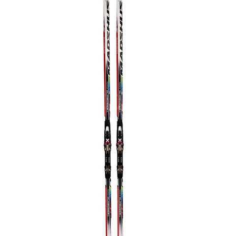 Fischer Twin Skin Team langrennski med integrert fell. Klassiske langrennski med to feller under sålen som gir godt feste uten bruk av festesmøring. Skiene har spenn og vektanbefaling oppgitt til 51–64 kg (112–141 lbs) på etiketten. Undersiden viser tydelige fellsoner langs midten av skiene. Leveres med monterte bindinger (type ikke spesifisert på bildene). Egnet for klassisk langrenn på preparerte løyper for løpere innenfor anbefalt vektområde.