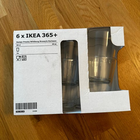 Et glassett fra Ikea, uåpnet da vi fant noe annet. Serie 365+, 30 cl. Hentes på Myrvoll. Nypris 89kr