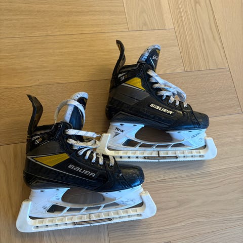 Bauer Supreme S25 ishockeyskøyter for barn i størrelse 35. Modellen er en klassisk ishockeyskøyte med solid ankelstøtte og snøring foran. Overdelen er i syntetisk materiale med svart og gul fargekombinasjon, og innvendig polstring gir ekstra komfort rundt ankel og vrist. Skøytene har TUUK-skinner tilpasset ishockey eller bandybruk. Egnet for barn som spiller ishockey/bandy eller ønsker stabile skøyter til bruk på isbaner.