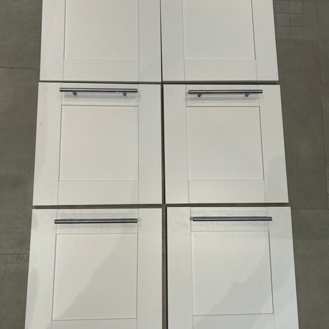 Skapet har hvite profilerte fronter fra Sävedal-serien og er tilpasset hjørneløsning på kjøkken. Innvendig er det montert en to-etasjes karusell med sirkelformede hyller og metallkant, festet til en sentral stang. Løsningen gir utnyttelse av plassen i hjørnet og enkel tilgang til innholdet.