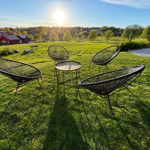 Koselig og lun stol. Kan brukes både ute og inne, men er kun brukt innendørs et fåtall ganger som lesekrok. Kan ikke sendes - må hentes! Er ferdig montert og kjøpt i 2024. Røykfritt hjem og oppbevart på rom uten kjæledyr. Putevar kan vaskes. Merk at puter og teppe utover det som sees i annonsen følger ikke med. Se annonse for flere detaljer og mål: https://jysk.no/hage/loungemobler/loungestoler/loungestol-halvrebene-natur.