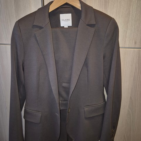 Deilig, myk kvalitet, foret, feminin passform, rette ben. Lekker dress for dem som kler slikt - det gjør ikke jeg🤪. Impulskjøp våren 2025 som aldri har blitt brukt. På tide at den går videre, så nå kan du gjøre et kupp! Selges som helt sett, jakke og bukse samlet.