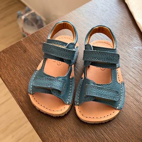 Froddo tøfler for barn i størrelse 23 (stor i størrelse mer som en 24). Modellen er en unisex barfot-tøffel med lyseblå bunnfarge og mønster, samt kontrastfargede kanter og såle. Tøflene har dobbel borrelåslukking over vristen for enkel justering og av- og påkledning. Yttersålen er fleksibel og egnet for innendørs bruk. Passer som innesko eller tøfler i barnehage og hjemme for barn.