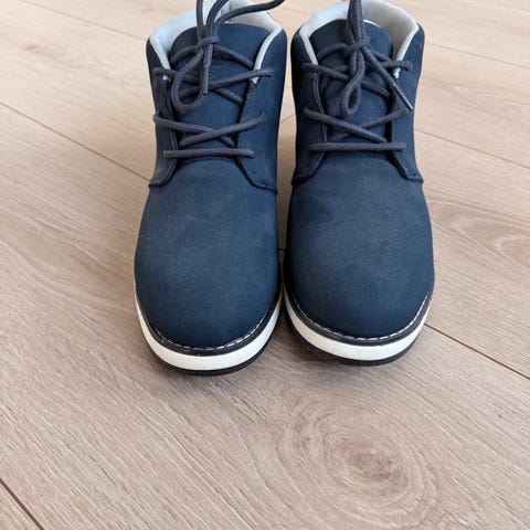 Jean Paul støvler i størrelse 45. Modellen er ankelhøy med snøring. Skoene er i skinn brun overdel med lys yttersåle og tekstilfôr rundt ankelen i grå melert tekstil. Sålen har mønster for bedre grep. Passer til hverdagsbruk i kjøligere vær. Skoene er impregnert.