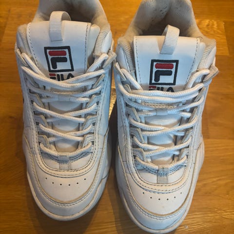 Fila sneakers joggesko i størrelse 41. Modellen er lave joggesko i hvit farge med lisser og gummisåle. Overdelen er i syntetisk materiale med Fila-logo på siden, pløsen og hælen. Skoene har polstret hælkappe og krage for økt komfort. Egnet til hverdagsbruk og lett aktivitet. 250 kr + frakt :)