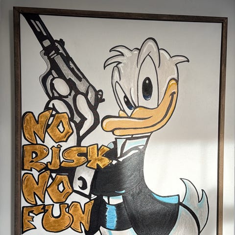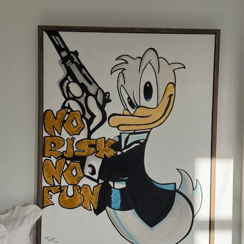 Bildet er malt for hånd, signert av kunstner, og rammet inn i en solid treramme.