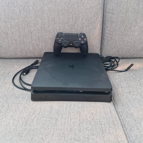PS4 slim med kontroll og spill