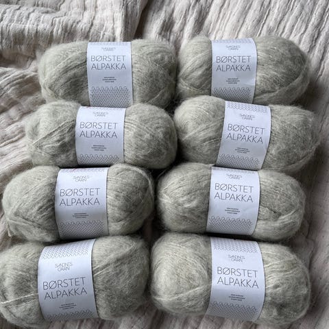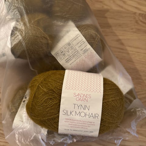 KFO silk mohair i olivengrønn farge, ett helt nøste + ett det er tatt litt av. Sandnes Garn Alpakka Silke garn i olivengrønn farge. Ett helt nøste + to små rester.