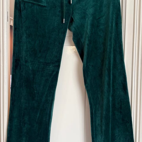 Juicy Couture joggebukse for dame i størrelse L. Buksen er rosa og laget i polyester. Klassisk joggebuksemodell med rette ben og lommer foran og bak. Egnet til hverdagsbruk og avslappede anledninger.