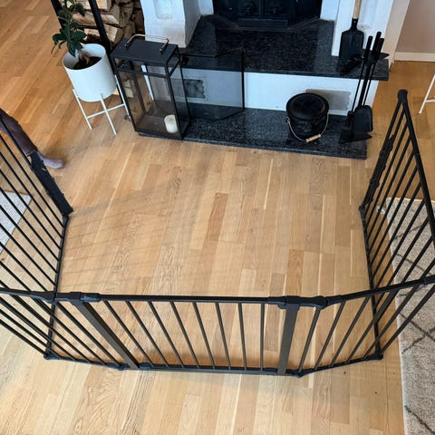 Sikkerhetsgrind brukt rundt peisen for å holde ungene unna. Kan settes sammen til en sirkel, men mangler delene for å skru dem samme. (Se bilde) Mulig dette kan kjøpes som reservedeler, eller erstattes av en vanlig mutter.