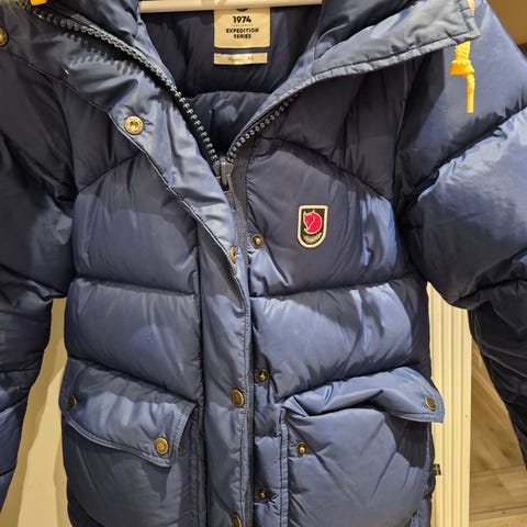 Kjøpt i 2021. Brukt pent hver vinter. Selges for ønsker en større størrelse. En liten flekk på brystet på jakken som viste på bildet, og sminkeflekker på innsiden av jakkekragen- dette vises ikke på utsiden. Pose til jakke følger med. Ny pris ligger på mellom 6-8000kr