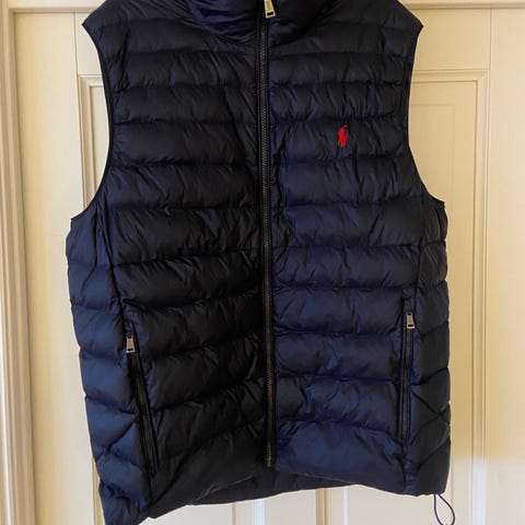 Polo Ralph Lauren Performance vest for herre i størrelse L. Vesten er mørk blå. Den har gjennomgående glidelås i front og to sidelommer med glidelås. Som ny! Kun brukt en gang pga for stor. Ny pris 3500. Åpen for bud.