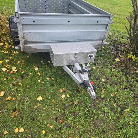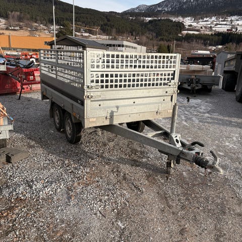 Tysse tilhenger med tandem aksel i grå utførelse. Tilhengeren har åpne lemmer på alle sider for enkel lasting og lossing. Den er utstyrt med nesehjul, drag med standard tilhengerkobling og baklys med refleks. Konstruksjonen er i metall med galvaniserte flater. Egnet for transport av byggematerialer, utstyr og annet gods innenfor tilhengerens vekt- og størrelsesbegrensninger.