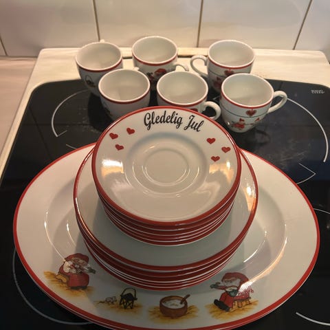 Inhesion middagstallerkener porselen rød dekor