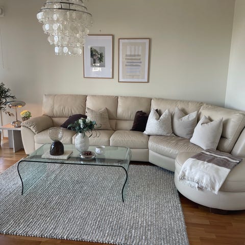 Nydelig italiensk design (Natuzzi) skinnsofa i beige /Leather Sofa in Beige