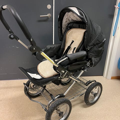 Emmaljunga barnevogn svart og hvit