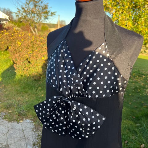 Nydelig fotsid kjole ved l si det er en 42 str. den er foret jeg er 169 høy og passet perfekt på lengden. Tøylig bakstykke.