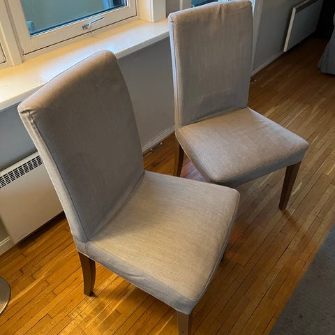 Fire svarte, svært komfortable, men litt eldre kontorstoler egner seg også veldig godt som spisestuestoler. De må hentes, men kan de også leveres innenfor Oslo til en liten kostnad.