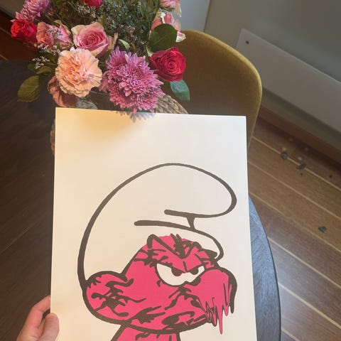 Selger et moderne pop art-trykk med Superman fremstilt på en leken og uventet måte, der han sier «Mama». Motivet kombinerer klassisk superhelt-estetikk med humor og street art-uttrykk, og gir bildet en unik personlighet og varme som skiller seg tydelig ut.