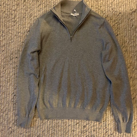 Mr. Capuchin genser med glidelås for herre i størrelse M. Genseren er grønn og laget av merinoull. Den har krage og kort glidelås i halsen. Passer som hverdagsgenser eller mellomlag på kjøligere dager.