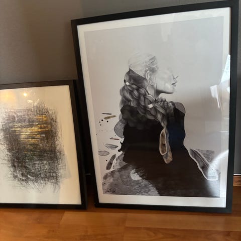 Bilder med ramme i svart-hvitt. Bestilt fra Desenio. Selges samlet 300,- Kan selges for kr. 100,- for det minste bildet og 250,- kr for det største.
