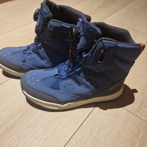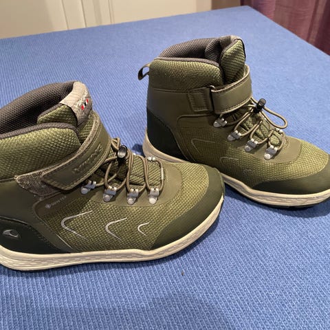 Viking barnesko unisex i størrelse 37. Skoene er i en grønn farge med lyse såler og detaljer. Modellen er en høyere sko med borrelås øverst og elastiske lisser for enkel justering. Overdelen er i tekstil og syntetisk materiale, med perforerte felt på sidene. Skoene har kraftig yttersåle som gir godt grep. Passer til hverdagsbruk for barn og unge, og kan brukes av både gutter og jenter.