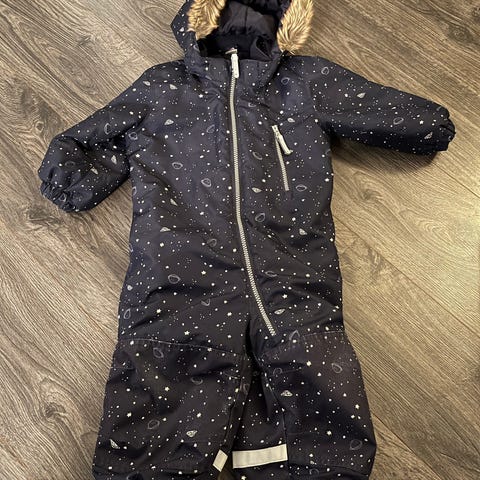 Godt brukt vinterdress fra Polarn O Pyret i str 86. Slitte strikk, mangler øverste borrelås, litt slitt farge på f.eks rompe - se bilder. Den er kjempefin som reservedress, god og varm. Jeg kjøpte den på loppemarked som reservedress her.