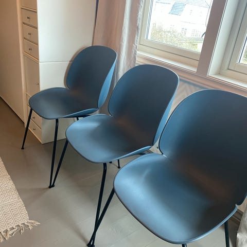 Seks Bat- stoler fra GUBI, designet av GamFratesi Studio selges. 3000 kr per stol. Kjøpt nye hos Nordic nest i 2023. Pent brukt.