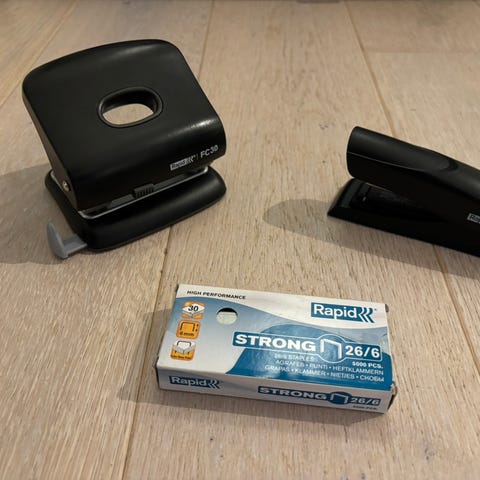 RAPID STIFTEMASKIN MED STIFTER, LITEN STIFTEM, HULLMASKIN OG BINDERS