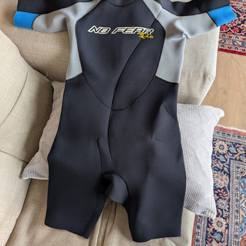 Våtdrakt/shorite til barn i størrelse 9/10 som er pent brukt.