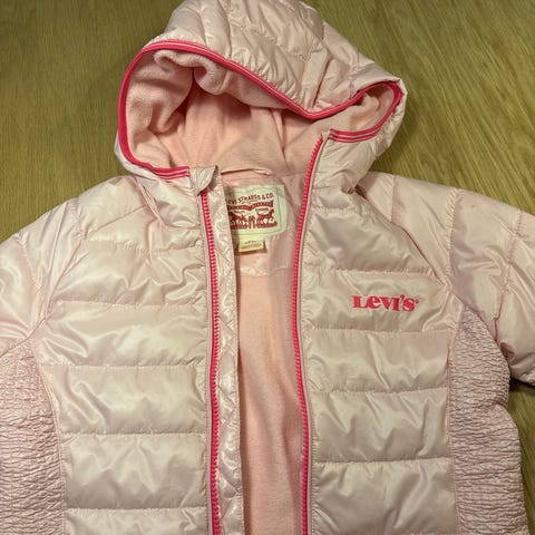 Levi's jakke for barn/jente i størrelse 140. Jakken er rosa og laget i polyester. Den har hette, glidelås i front og elastiske avslutninger ved ermene. Logo er plassert på brystet og på ermet. Passer til hverdagsbruk og som ytterplagg i overgangssesonger.